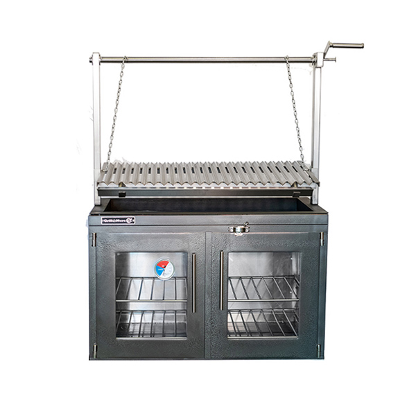 - Asador estilo Argentino con parrilla de ángulos, sistema de elevación y grasera desmontable.