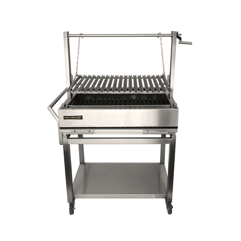 - Asador y carro fabricados en acero inoxidable T304.