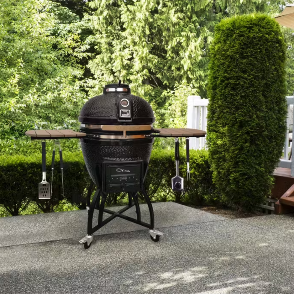 Asador cerámico con la innovación de su sistema de control calibrado separado para asar y ahumar, ubicados tanto en la ventila superior como en la Pro Zone™ inferior, con perillas para brindar el máximo control en todo el rango de temperatura, desde las mas bajas para ahumar hasta el calor mas intenso para sellar o dorar.